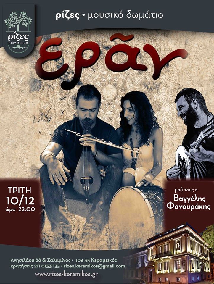 Οι Εράν στο Symposion Cultural Center στην Σαντορίνη στο Μεγαλοχώρι. Σάββατο 9 Ιουλίου στις 9:00.