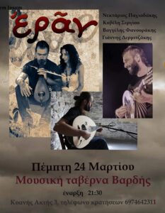 Οι Εράν την Πέμπτη 24 Μαρτίου στην Ταβέρνα Βαρδής – με Φανουράκη Βαγγέλη και Γιάννη Δερμιτζάκη