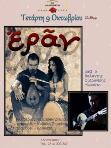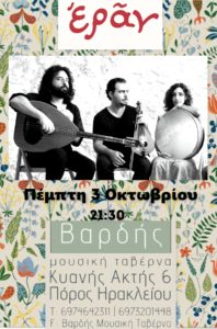Οι Εράν στην μουσική ταβέρνα Βαρδής στον Πόρο στο Ηράκλειο – Πέμπτη 3 Οκτωβρίου